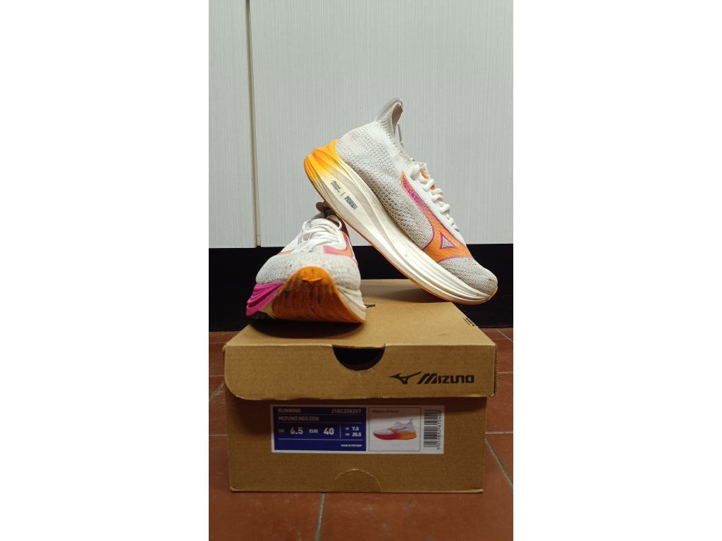 Mizuno Neo Zen je běžecká obuv optimalizovaná pro přirozený, plynulý a efektivní běh. Díky technologii Smooth Speed Assist, která byla původně vyvinuta pro závodní modely, nyní tato tréninková bota pomáhá běžcům dosáhnout ideálního běžeckého stylu při každodenním tréninku. Mezipodešev je vyrobena z inovativního materiálu Mizuno Enerzy NXT (verze obohacená dusíkem), který nabízí výjimečnou měkkost, vysoký návrat energie a zároveň nízkou hmotnost – pro maximální komfort a dynamiku při běhu. Mizuno Neo Zen je ideální volbou pro běžce s neutrálním došlapem, kteří hledají pohodlnou a technicky vyspělou obuv pro každodenní trénink – s prvky inspirovanými elitními závodními modely.